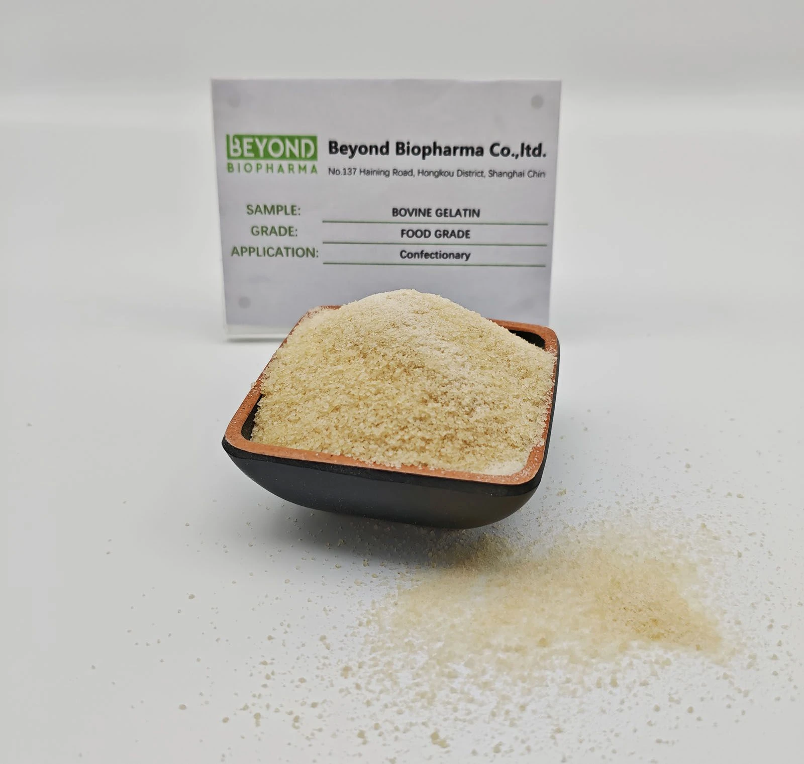 Dibuat dari kulit dan tulang sapi berkualitas tinggi, gelatin kami melalui proses penyaringan bertahap untuk memastikan hasil berwarna kekuningan pucat hingga hampir transparan, sempurna untuk permen premium.